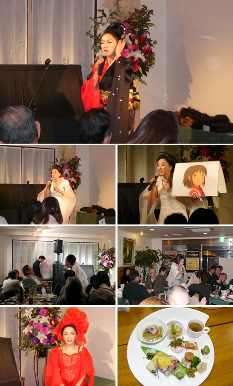 横井さんと言えば、「清洲城鬼ころし」「東海ろうきん」「花キューピッド」など、テレビで一度は聞いた事のあるCMソングを歌われているCMソングシンガーです!CMソングメドレーはもちろんの事、バンドのボーカルもつとめられていらっしゃるので、ホイットニーヒューストンのナンバーや一青窈さんの曲なども歌って頂きました。バックで演奏して頂いたNEO.Japanesqueの皆さんは、ハリウッド映画の挿入歌も決まっている新進気鋭の和洋折衷オーケストラで、和太鼓や笛にドラムやキーボードを入れた7人組。皆さんの衣装は横井さんのお母様が手作りされているようで、とってもステキでした。最後はお客様と一緒に「川の流れのように」を大合唱。皆様ありがとうございました。